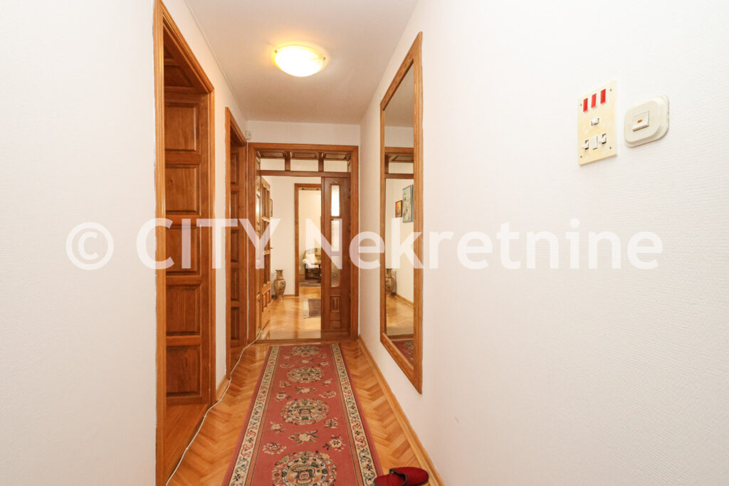 Kvadratura stana iznosi 104 m2, po strukturi je četverosoban, primarne sjeverne orjentacije.